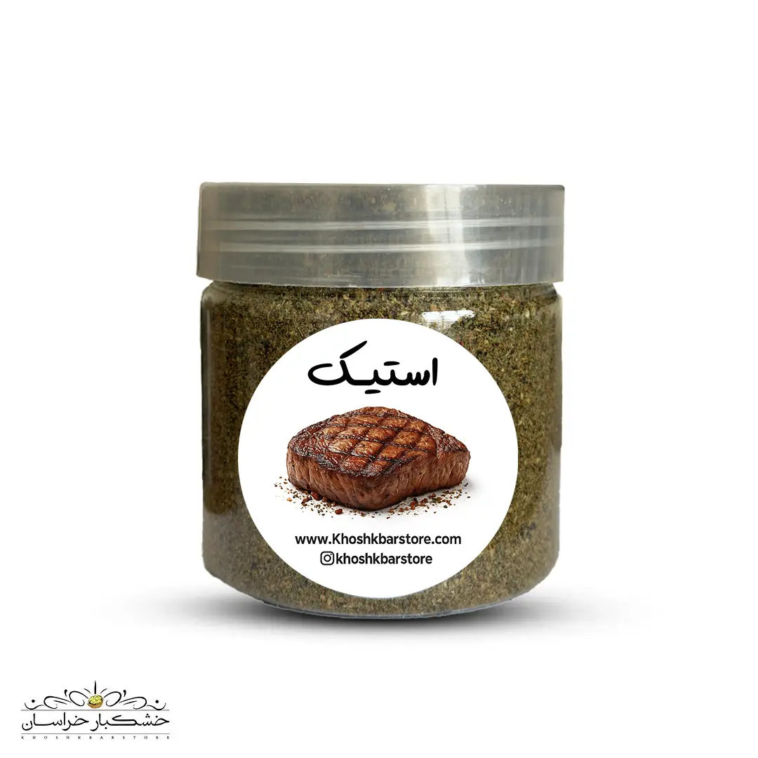 •  ادویه استیک؛ ترکیبی قدرتمند و خوش‌عطر برای برجسته‌کردن طعم واقعی گوشت.