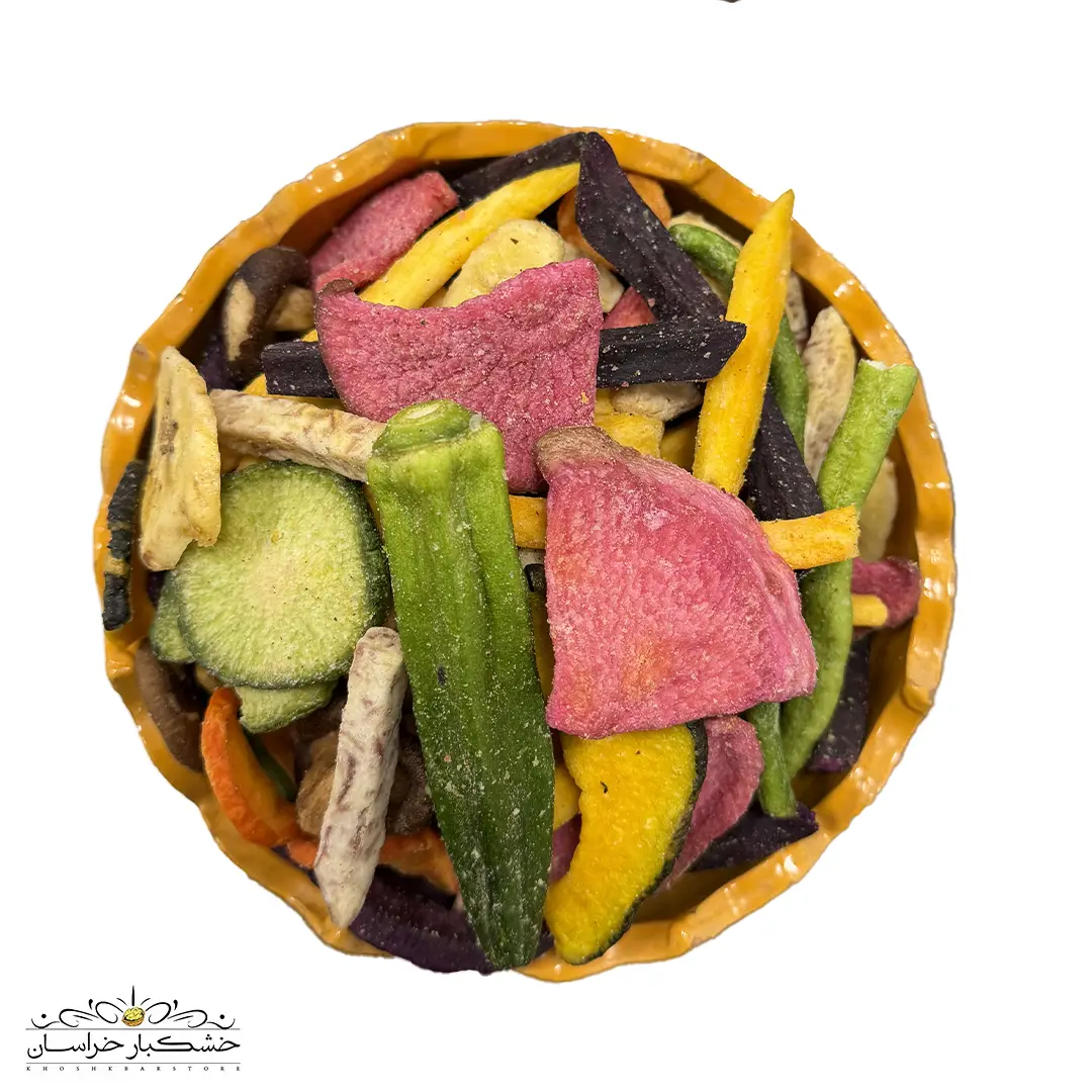 چیپس سبزیجات؛ ترکیبی رنگارنگ از سبزیجات واقعی با بافتی ترد و سبک.