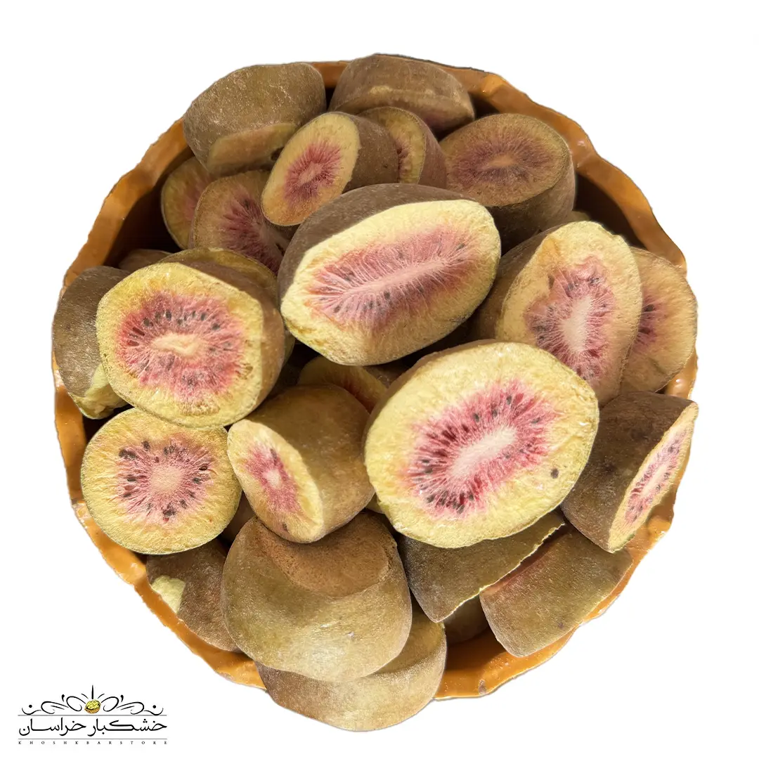کیوی تو سرخ پفکی فریز درایر؛ برشهای طلایی زردآلو با بافتی ابریشکل، سبک و طعمی شیرین و طبیعی.